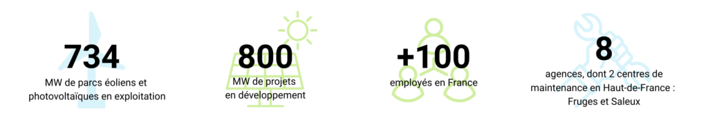 ERG France, c’est une capacité installée de 734 MW de parcs éoliens et solaires, et 800 MW de projets en développement ! En Haut-de-France, ERG exploite 19 parcs éoliens, soit 226 MW correspondant à 100 éoliennes.