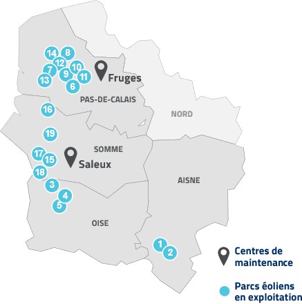 En France, ERG est présent avec plus de 100 salariés répartis dans 8 agences sur le territoire, dont 4 centres opérationnels de maintenance et d’exploitation. La maintenance du parc éolien de Saint-Riquier est ainsi réalisée par notre équipe de 14 salariés basée au centre de maintenance de Fruges.